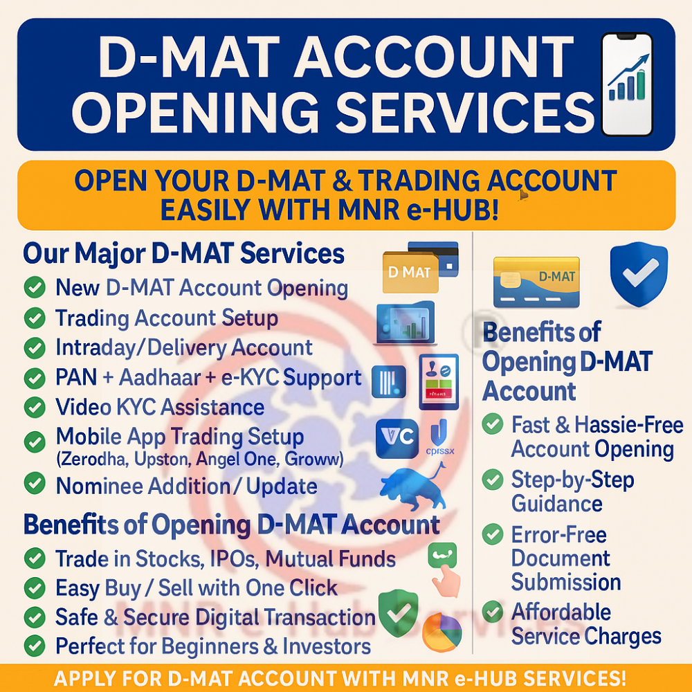 MNR e-Hub Services acts as a facilitator for opening Demat Accounts through authorized SEBI-registered intermediaries.